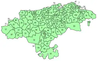 Een overzicht van gemeenten in de Spaanse provincie Cantabrië. In de eerste kolom staat het gemeentenummer, waarvan de eerste twee cijfers verwijzen naar de provincie met nummer 39000.
