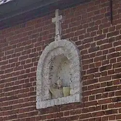 De segmentboogvormige gevelniskapel is bovenaan omlijst met drie lagen halve bakstenen. Centraal bovenaan is er een sluitsteen in blauwe harsteen. Deze stuitsteen heeft een gegraveerde datering ‘1935’. In de nis prijken twee heiligenbeelden, één van O.L.V. van Lourdes en één van Bernadette Soubirous. De nis wordt afgesloten met ijzeren tralies. [16]