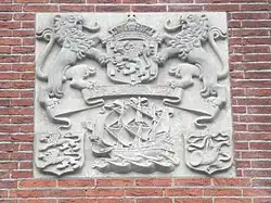 | 1908-1911 | Wapen van Frederik Hendrik van Oranje. Oorspronkelijke versie is rond 1633 gemaakt en in de periode 1795-1806 is deze vernietigd om plaats te maken voor het wapen van het Koninkrijk Holland. In 1813 is de steen vervangen door een gietijzeren plaat met daarop geschilderd het wapen van Oranje-Nassau. Tijdens de restauratie van het Statencollege tussen 1908 en 1911 is de huidige steen geplaatst. | onbekend | Statencollege, Roode Steen 1 | Hoorn | natuursteen | |