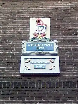 | 1751 herplaatst na 1875 | Drie gevelstenen: Wapen van Alkmaar met het getal 17, een marskramer, het wapen van Hoorn met het getal 51 | onbekend | Breed 9 | Hoorn | ||