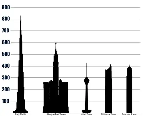 | 5 | Abraj al Bait Hajar Tower | Mekka | 265 m | 52 | 2012 |