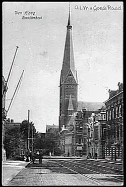 | Onze-Lieve-Vrouw-van-Goede-Raadkerk | Bezuidenhoutseweg | Bezuidenhout, Den Haag | Rooms-katholiek | Verwoest | Op 3 maart 1945 gebombardeerd, op 9 november 1955 vervangen door de gelijknamige opvolger | ![]() |