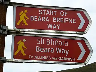 | Beara Way/Slí Bhéara[2][4] | Cork, Kerry | Lusvormig | Glengarriff | Glengarriff | 206 km (128 mijl) |
