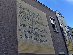 1994 | Bij een schilderbeurt van de muur in juli 2006 is het gedicht overschilderd; het is inmiddels opnieuw aangebracht | ||