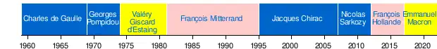 21 mei 1981 | 17 mei 1995 | PS | 1981 | Pierre Mauroy (1981–84) | |
