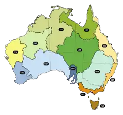 De Australische overheid onderscheidt dertien drainagebekkens in het land:[1][2] Noordoostkust (North East Coast, NEC), Zuidoostkust (South East Coast, SEC), Zuidoostkust (Victoria) (South East Coast (Victoria), SEV), Tasmanië (Tasmania, TAS), Murray-Darlingbekken (Murray-Darling Basin, MDB), Zuid-Australische Golf (South Australian Gulf, SAG), Zuidwestelijk Plateau (South Western Plateau, SWP), Zuidwestkust (South West Coast, SWC), Pilbara-Gascoyne (Pilbara-Gascoyne, PG), Noordwestelijk Plateau (North Western Plateau, NWP), Tanami-Timorzeekust (Tanami-Timor Sea Coast, TTS), Lake Eyrebekken (Lake Eyre Basin, LEB), Carpentariakust (Carpentaria Coast, CC). De rivieren in deze bekkens monden uit in achtereenvolgens de Koraalzee, Grote Oceaan, Grote Australische Bocht, Indische Oceaan, Timorzee, Arafurazee, Golf van Carpentaria en het endoreïsche bekken van het Eyremeer.
