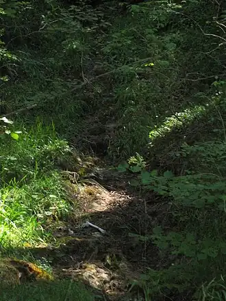 Droge bedding van het Canal del Bosc de Coma (Anyós), zijrivier van de Riu de Padern