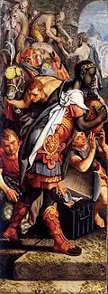 | SK-C-461 | Pieter Aertsen | Vleugel van een altaarstuk met de aanbidding der koningen en de opdracht in de tempel | Ca. 1560 |