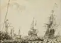 | SK-A-1394 | Martinus Schouman | Het treffen tussen de Hollandse en de Engelse vloot tijdens de tocht van de Hollandse flottielje naar Boulogne, 1805 | 1806 |