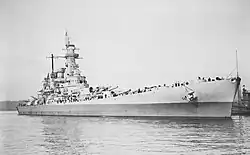 - Bewapening: 9 × 16 in (406 mm) (3x3), 20 × 5 in (127 mm) (10x2), 80 x 40 mm AA (20x4), 49 x 20 mm AA (49x1) (1980 modificatie voegde toe 32 x Tomahawk en 16 x Harpoon raketten en 4 x Phalanx CIWS, en verwijderde 6 5-in kanonnen)