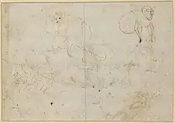| Schetsblad met koppen met op de achterzijde Een krijger[4] | Rotterdam, Museum Boijmans Van Beuningen |
