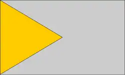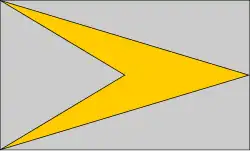 Een vlag met een inkeping aan de vlucht in de vorm van een gelijkbenige driehoek. De diepte van de inkeping wordt aangeduid met een verhoudingsgetal tot de vlaglengte.