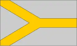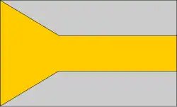 Een baan op een vlag die diagonaal van de broekhoek naar de vluchttop loopt.