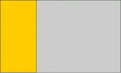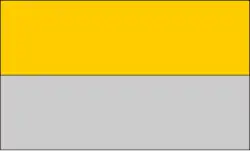 De vlag van Westerschouwen; de blauwe lijn loopt over de broekdiagonaal