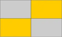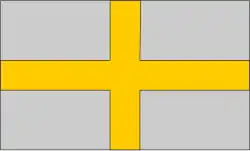 Een veel voorkomend embleem op vlaggen en vaandels. Bij een dergelijk kruis vormen de armen - onafhankelijk van de vlaglengte - een hoek van 90˚ met elkaar, en staan ze onder een hoek van 45˚ op de zijden van de vlag.