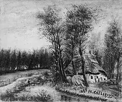 - ↑ Het gaat hier mogelijk om een vervalst schilderij (zie handtekening en datum), dan wel om origineel werk zonder handtekening, die later door een derde is toegevoegd ter herinnering aan de maker. Archive, Moulin a eau. BALaT (1975). Geraadpleegd op 12 augustus 2020.