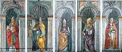 Maria-Tenhemelopneming met de heiligen Benedictus, Thomas en Julianus | 1500 | tempera en goud op paneel | 178 × 88,2 | Parma, Galleria nazionale di Parma | |