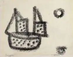 Op het strand | 1939-50 | Tekening in zwart krijt |