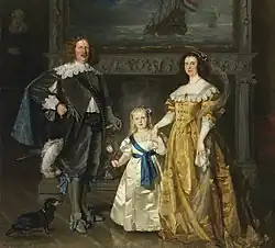 Portret van Koningin Wilhelmina, prins Hendrik en prinses Juliana in historisch tenue | 1915 | 239 × 262 cm | Collectie Huis Oranje-Nassau | |