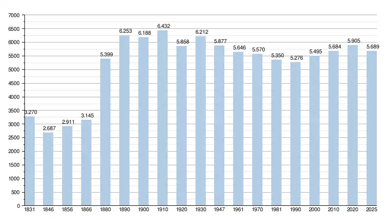 Alle historische gegevens hebben betrekking op de huidige gemeente, inclusief deelgemeenten, zoals ontstaan na de fusie van 1 januari 1977.