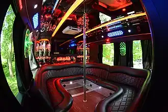 De limobussen hebben een capaciteit van 10 tot 50 passagiers die in een rij haaks op de rijrichting geplaatst zijn. Vaak bevindt zich aan de uiteinden een rondzit. Aan boord zijn verscheidene luxe voorzieningen, waarbij gedacht kan worden aan onder andere meerdere beeldschermen, computers, internetverbinding, climate control, lasershows en discolichten.
