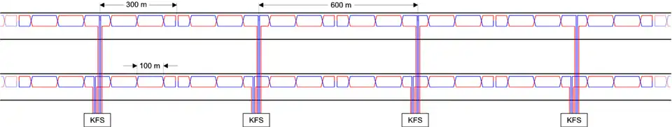 De data-overdracht van de snelheidstoestemmingen geschiedt niet zoals bij ATB-EG via een gecodeerde spoorstroomloop, maar via twee kabels in het spoor. Een in het midden en een andere langs de rand van de spoorstaaf. Om de honderd meter kruisen de kabels elkaar. Er worden steeds drie lussen op een verdeelkast aangesloten (tweemaal een halve lus en tweemaal een hele lus). De verdeelkasten versterken de signalen in beide richtingen. Er is een vieraderige kabel, die de verdeelkasten van signaal voorziet.