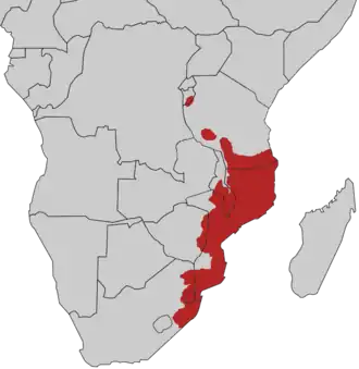 Deze soort komt voor in zuidoostelijk Afrika en telt drie ondersoorten:[2]