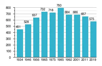 Van de 657 inwoners die in februari 2011 werden geregistreerd, waren er 88 jonger dan 15 jaar oud (13%), terwijl er 106 inwoners van 65 jaar of ouder werden geteld (16%).[4]