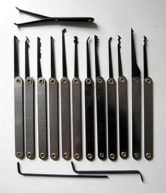 Lockpicken wordt gedaan met minuscule gereedschappen (lockpicks). Deze zijn niet overal ter wereld legaal. Lockpicks worden in de fabriek gemaakt, maar sommige lockpickers gebruiken enkel zelfgemaakte gereedschappen. Het maken van lockpicks kan al met een klein budget, soms worden met de hand gemaakte lockpicks beter geacht dan de fabrieksmatig gemaakte exemplaren.