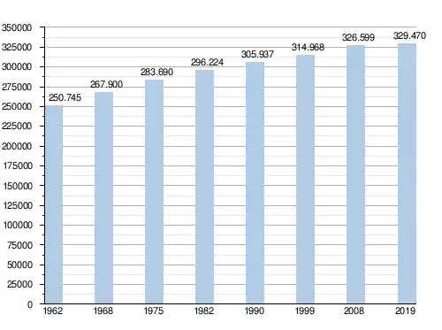 Bron: Recensement Populaire INSEE - 1962 tot 1999 population sans doubles comptes, nadien Population Municipale
