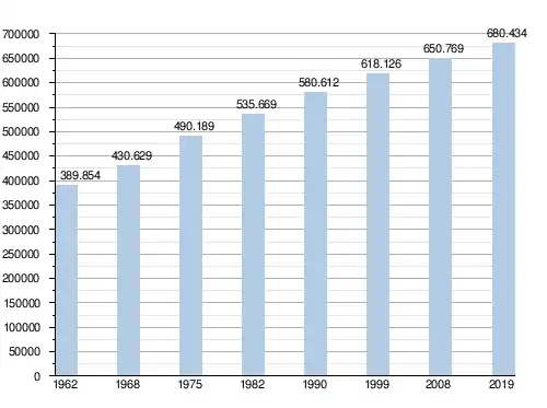 Bron: Recensement Populaire INSEE - 1962 tot 1999 population sans doubles comptes, nadien Population Municipale
