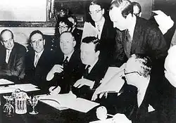 - ↑ In de Overeenkomst van Parijs van 14 januari 1946 betreffende herstelbetalingen (Pariser Reparationsabkommen vom 14. Januar 1946) waren buitenlandse tegoeden in beslag genomen geworden, waarvan de waarde echter slechts een fractie van de door de oorlog veroorzaakte aanspraken op schadevergoeding bedroeg.