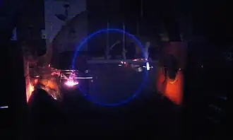Afbeelding 2 laat een elektronenstraal zien, die door de lorentzkracht in een magneetveld wordt afgebogen. De blauwe cirkel is het gevolg van de excitatie van waterstofatomen die zich in de kathodestraalbuis bevinden.