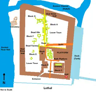 De haven lag op enige afstand van de hoofdtak van de rivier om verzanding tegen te gaan. Volgens moderne oceanografen moeten de technici veel hebben geweten over getijden om zo'n haven te kunnen bouwen aan de steeds veranderende loop van de Sabarmati, maar ook moeten ze zeer bedreven zijn geweest in hydrografie en maritieme techniek. Men neemt aan dat de ingenieurs de getijdebeweging hadden bestudeerd en het effect ervan op gebouwen van baksteen hadden onderzocht, want de wanden waren gemaakt van in ovens gebakken steen. Deze kennis stelde hen ook in staat een goede plaats voor de stad te kiezen, want het verschil tussen eb en vloed is in de Golf van Khambhat het grootst, zodat schepen met vloed de rivierdelta op konden worden geloodst. De ingenieurs bouwden een trapeziumvormige kuip die van noord naar zuid gemiddeld 215 m lang was en van oost naar west 35 m.[1]:28-29