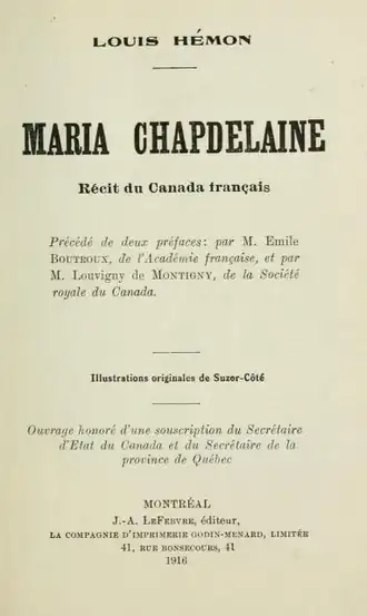 Hémon heeft de wijdverbreide publicatie van zijn boek niet meer meegemaakt. Enkele dagen voor zijn vertrek uit Montreal had Hémon de getypte versies van zijn manuscript opgestuurd; een naar het Parijse dagblad Le Temps en het tweede exemplaar naar zijn familie in Frankrijk. De roman werd begin 1914 in Le Temps gepubliceerd in de vorm van een feuilleton. In 1916 werd de roman in boekvorm uitgegeven in Montreal bij Joseph-Alphonse LeFebvre, voorzien van illustraties door Marc-Aurèle de Foy Suzor-Coté. De uiteindelijke versie verscheen in de serie Les Cahiers verts bij Éditions Grasset in Parijs in 1921. De uitgeverij zette een uitgebreide publiciteitscampagne op en de roman werd een groot succes in het Franse taalgebied. Daarna verschenen vertalingen in meer dan 20 talen.[5]