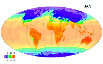 Bij de temperatuurextrema komen de hoogste temperaturen voor in de woestijngebieden van de Sahara en de Thar en de laagste in Oost-Siberië en op Antarctica.