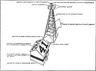 De bakens waren meestal op een 7 tot 11m hoge pyloon geplaatst, en bestonden uit een platform met daarop een acetyleen- of neonlamp. De lichten knipperden en zonden een morsecode uit, waardoor piloten hun locatie en richting konden bepalen. Er waren drie soorten lichtopstand: