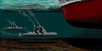 Onderwater varend zaten ze met elk twee duikers achter elkaar, op de bemande torpedo's. De duikers naderden de schepen die ze doelbewust hadden uitgekozen. De bestuurders van de torpedo-onderzeeërs lieten hun tuigen op de havenbodem zakken terwijl de andere kikvorsmannen met hun kleefmijnen onder de romp van de schepen zwommen. Daar kleefden ze hun magnetische mijnen met ontstekingsmechanisme tegen de scheepsrompen.