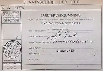 Tot 1940 werden de omroepen uit de contributie van hun leden betaald. Vanaf 1941 werd de PTT belast met de uitvoering van de heffing en verscheen de Luistervergunning. Deze vergunning was voor een jaar geldig en moest jaarlijks worden verlengd. Voor betaling moest men de vergunning, in de vorm van een kartonnen kaart, maandelijks voorzien van speciaal daarvoor gedrukte radiozegels, die op het postkantoor werden gekocht en aldaar werden geplakt en afgestempeld. Aan het einde van het jaar werd de kaart ingenomen en werd een nieuwe afgegeven. Wie giraal betaalde moest het ontvangstbewijs aan de luistervergunning hechten. Controleurs konden huis aan huis langskomen en vragen om de luistervergunning voor ieder toestel te mogen inzien. Dit systeem hield stand tot ca. 1966. In 1969 werd de heffing onafhankelijk van het aantal radiotoestellen in huis en verviel het stelsel met luistervergunningen definitief.[1]