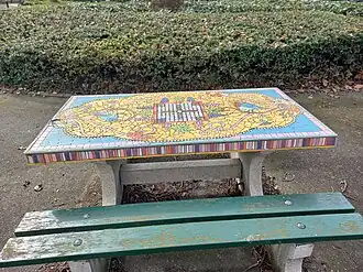 Voor wat betreft (toegepaste) kunst werd het plein opgefleurd met een variant van de Social Sofa, alsmede twee tafels met mozaïektegels.