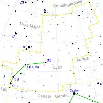- De helderste ster, alpha Lyncis heeft magnitude 3,13.