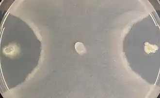| Lysobacter enzymogenes remt de groei van Pythium | |||||||||||