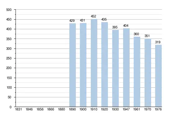 - Bronnen:NIS, Opm:1831 tot en met 1970=volkstellingen, 1976= inwoneraantal op 31 december