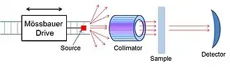 In zijn basisuitvoering bestaat een Mössbauerspectroscopieopstelling uit een bron met radioactieve atomen en een te bestuderen materiaal dat dezelfde soort atomen bevat (in de meeste gevallen ijzer-57). Daarachter wordt een detector geplaatst die de hoeveelheid radioactiviteit meet dat het te onderzoeken materiaal doorlaat. Doordat de radioactieve bron door het Mössbauereffect gammastralen kan uitzenden die geen energie hebben verloren door een terugslag, kan het te onderzoeken materiaal deze gammastralen weer absorberen. Ook deze absorptie moet dan plaatsvinden zonder dat er sprake is van energieverlies door een terugslag.