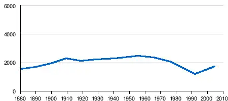 Onderstaande figuur toont het verloop van het inwoneraantal vanaf 1880.[1]