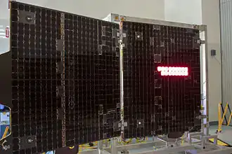 Met uitgeklapte zonnepanelen bedraagt de spanwijdte 11,43 m. De vier zonnepanelen beslaan een oppervlakte van 12 m² en zijn uitgerust met meer dan 2000 zonnecellen. In de nabijheid van Mars wekken deze (afhankelijk van baanpositie) 1150 à 1700 W op. Deze voorzien twee lithium-ion-accu's met een capaciteit van elk 55 Ah van elektriciteit. De zonnepanelen hebben een meeuwenvleugelvorm met een knik van 20°, om aerodynamische stabiliteit tijdens duiken in de atmosfeer te verschaffen.