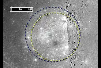 - ↑ (en) PIA13675: Mercury's Caloris Basin, One of the Largest Impact Basins in the Solar System op photojournal.jpl.nasa.gov, 9 november 2010 (geraadpleegd 1 mei 2017). Gearchiveerd op 21 januari 2022.