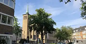 Dit kerkgebouw is voor de Evangelisch-Lutherse kerk in de bouwstijl van de Amsterdamse School ontworpen door de architect F Jantzen.