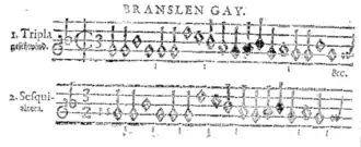 - ↑ Gegen das Jahr 1616 waren sie in Deutschland noch nicht eingeführt. Prätorius bediente sich ihrer hier zuerst. [Gathy Encyklopädie Musik-Wissenschaft 1840, 454]