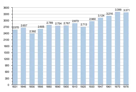 - Bronnen:NIS, Opm:1831 tot en met 1970=volkstellingen; 1976 = inwoneraantal op 31 december